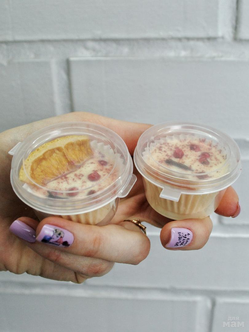 Состав: масло Ши, кокоса, какао, миндальное, сухое молоко, твин80, отдушка "бабушкин апельсиновый пирог".