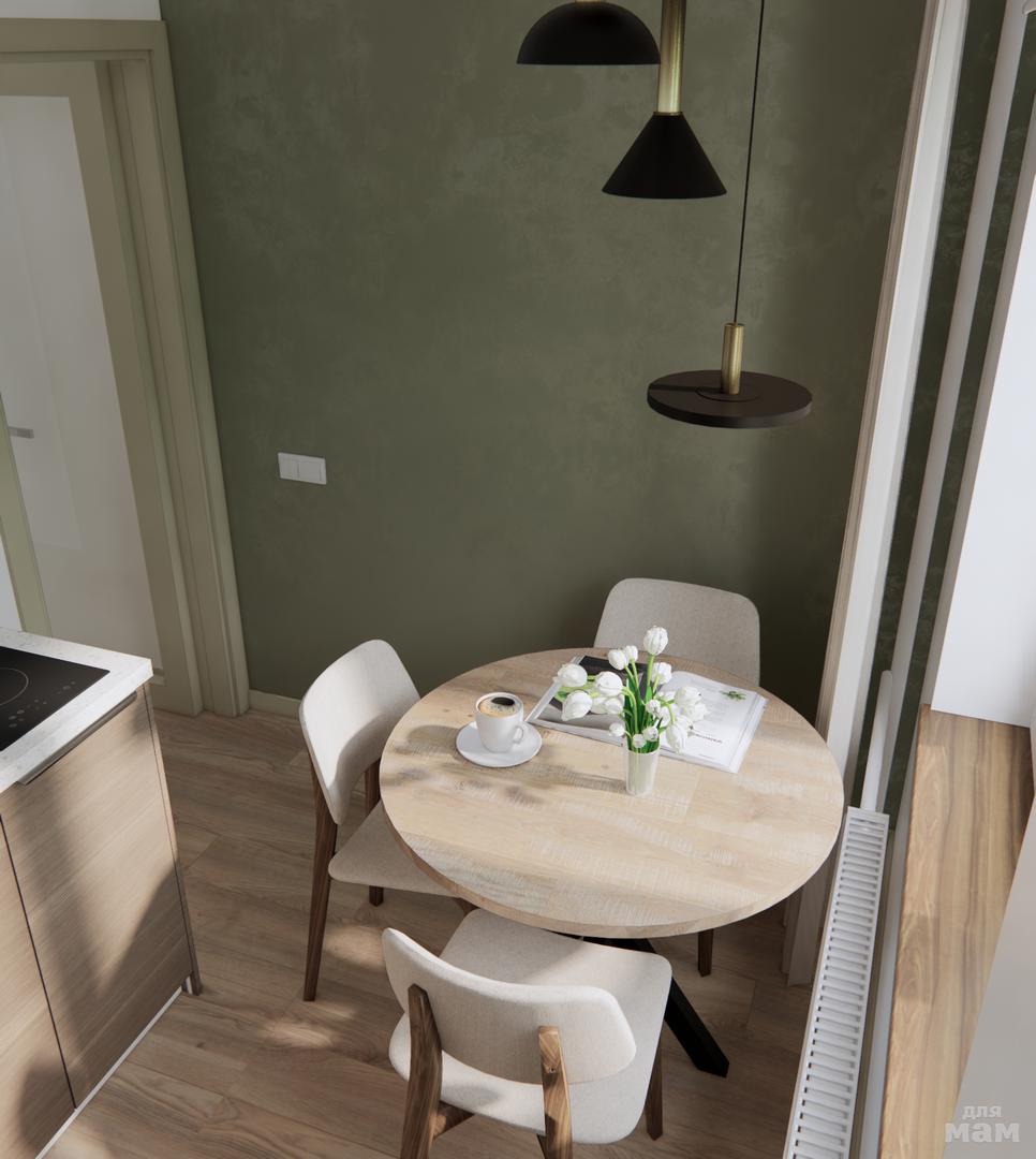 Кухня: Семья склонна к вегетарианству) В том плане, что не все члены семьи придерживаются данного режима питания, однако ежедневно используется соковыжималка, блендер, и другая техника, которую мы расположили в шкафах. Стол на 3 места, т.к .семья не кушает вместе, у всех свой режим, но на этот случай есть точно такой же стул, но используется он в другой комнате.
