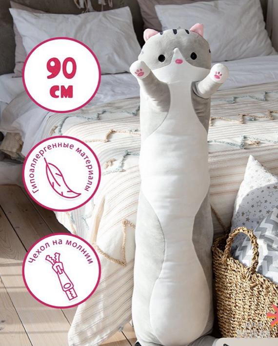 заботой о сладком сне ваших детей представляет популярную плюшевую игрушку длинный Кот батон 90см (кот багет). Заснув в обнимку с огромным котиком один раз, Вам больше не захочется расставаться c ней никогда. Сложно устоять перед этой прикольной подушкой: мягкие лапки, милая мордочка и гладкая шёрстка. От такой необычной подушки в восторге будут всех: девочек, мальчиков, подростков, взрослых и даже животные