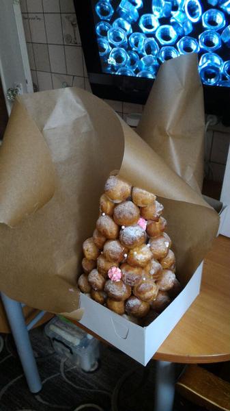 торт Крокембуш с ванильным кремом и на заднем плане с шоколадным кремом