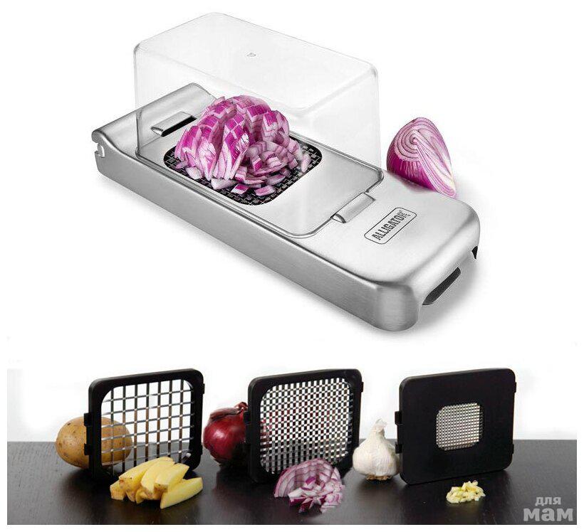 👍Улучшенная модель пресса-размельчителя. Используется для быстрой нарезки лука, яиц, сырых и варёных овощей, фруктов. Лезвия инструмента с острой фаской идеально нарежут все продукты кубиками, брусочками или соломкой.