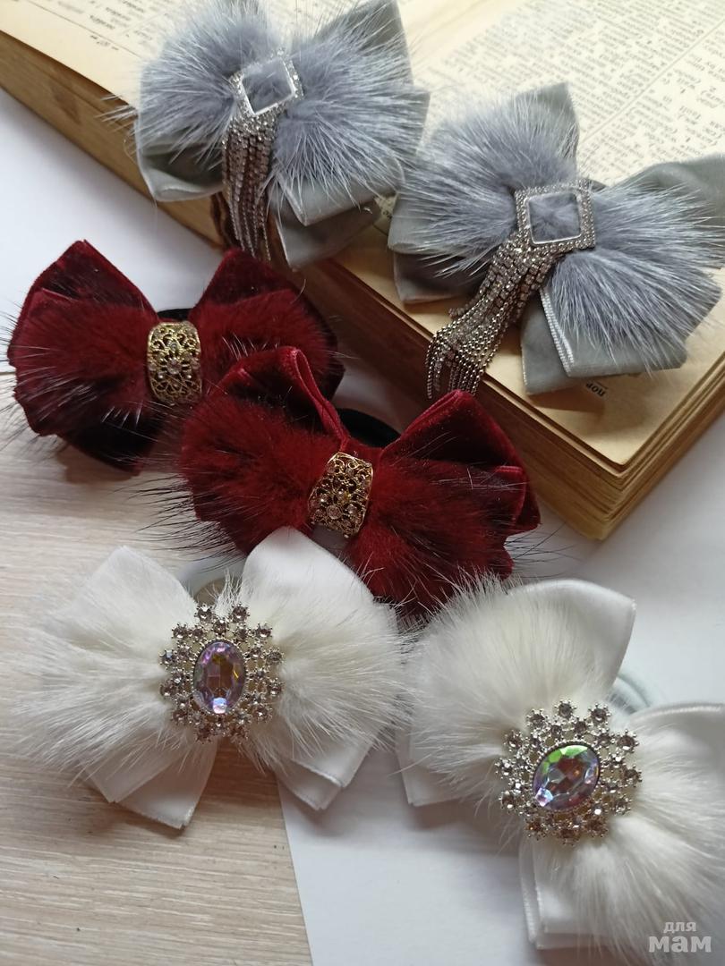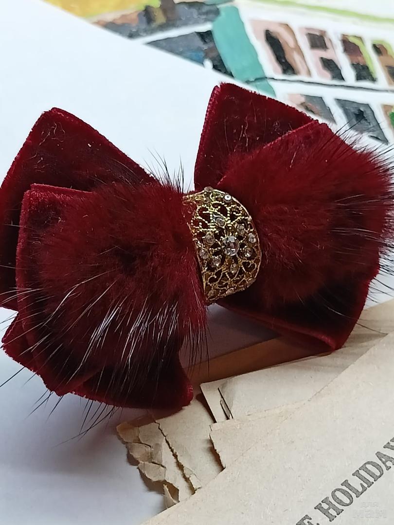 1) Шикарная коллекция бархата с натуральным мехом. Серединка класса люкс. Размер бантика 8 см Двойное крепление каждого элемента