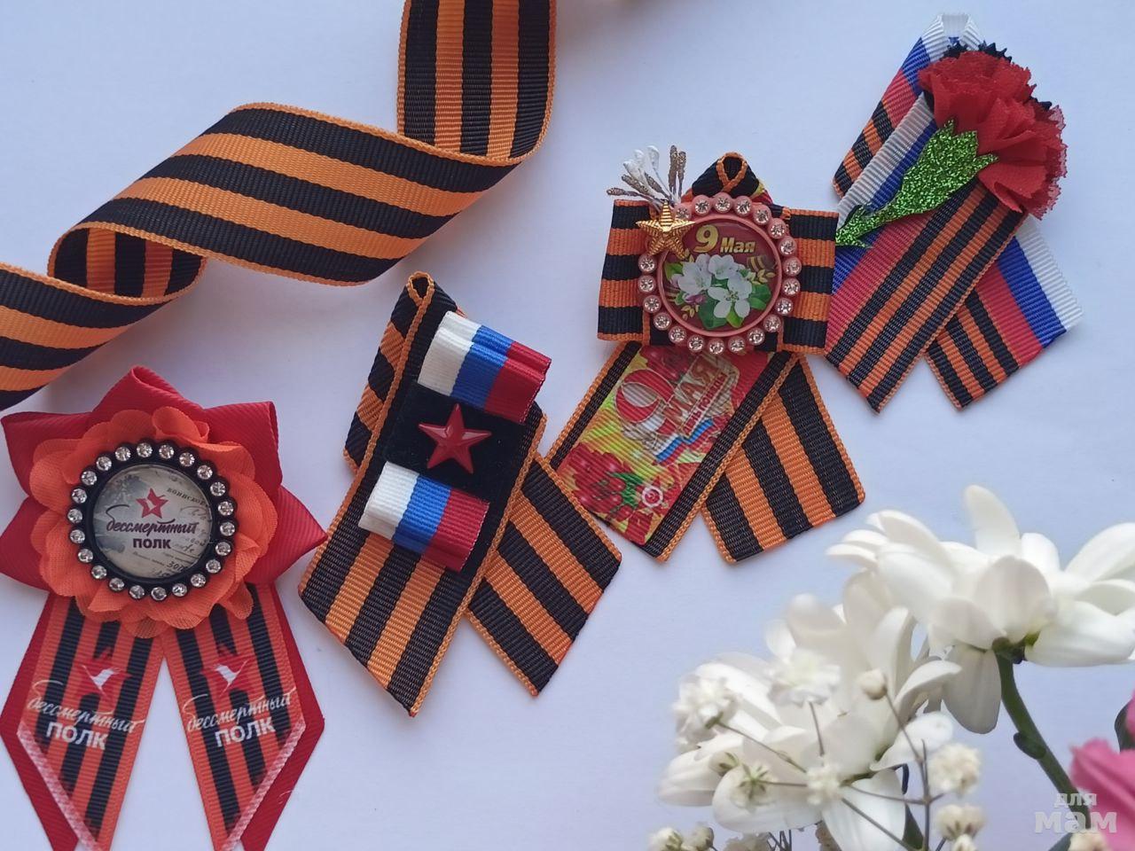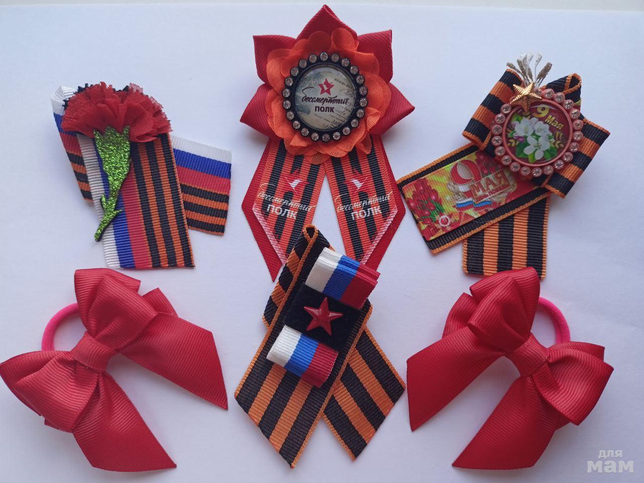 Все ленточки небольшие, аккуратные, без лишних деталей. Основа крепление - булавка. При желании могу предложить другую модель ленточек и бантиков (есть лента камуфляж) НО (!!!) ИЗ САМОЙ ГЕОРГИЕВСКОЙ ЛЕНТЫ УКРАШЕНИЕ НЕ ДЕЛАЮ!! ОСОБЕННО ЭТО ОТНОСИТСЯ К БАНТАМ!! Лента должна висеть только на груди и не быть элементом прически.