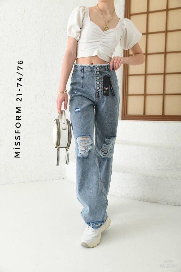 джинсы МОМ в светло голубой варке🔥 Яркая рванка которая придаст пикантности вашему образу💋