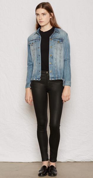 Черные укороченные джинсы skinny вошли в классическую коллекцию бренда. Модель с пятью карманами прошита коричневой строчкой и застегивается на молнию и металлическую пуговицу с тисненым логотипом марки.