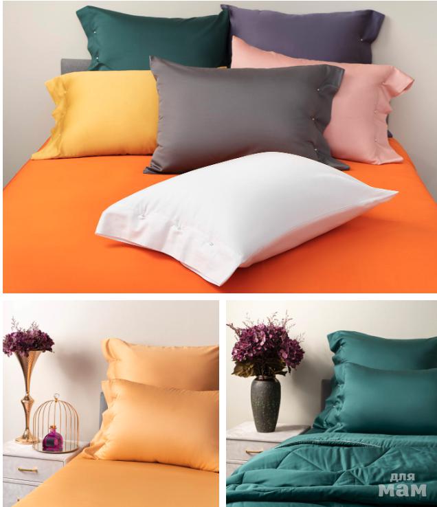 Простыни и наволочки представлены в 14 цветах: антрацит, беж, белый, бирюзовый, горчичный, зеленый, крем, лаванда, лиловый, оранжевый, песочный, розовый, серый, черный.