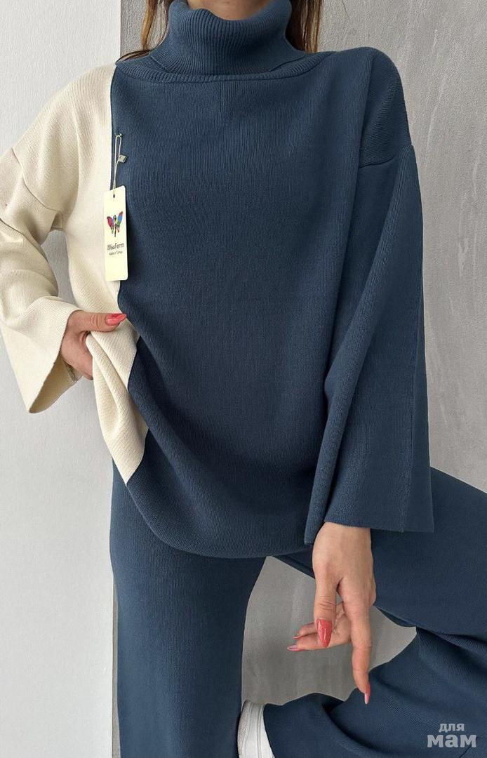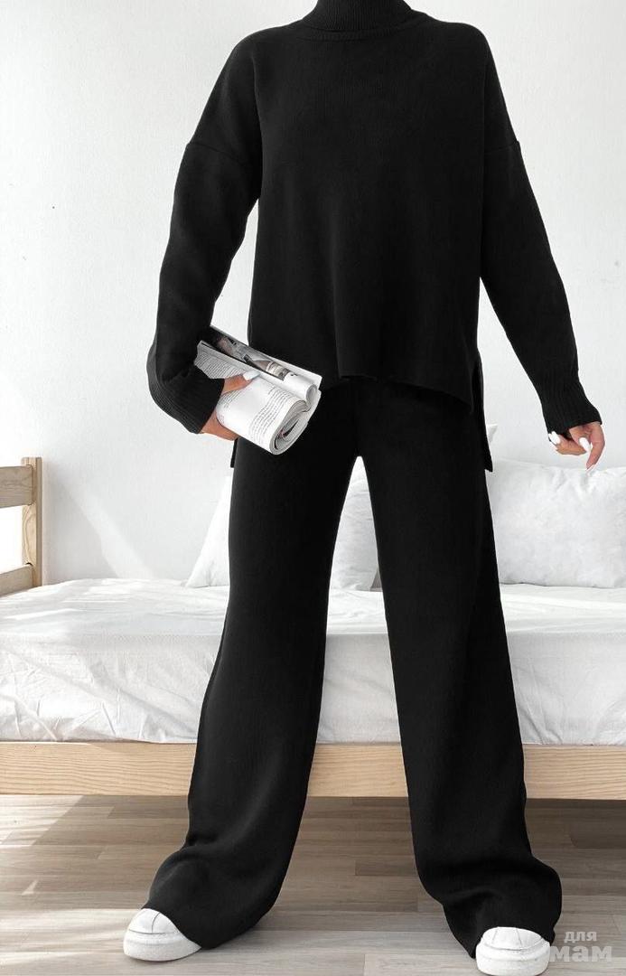 Трикотажный костюм со свободной кофточкой с горлом и брюками палаццо😍 Элегантное двух цветное сочетание💫 Теплый комфортный образ для нежных и красивых дам💋