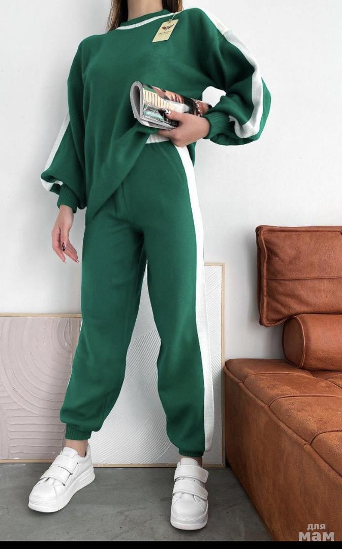 23. модель трикотажного костюма в стиле спорт шик😻 Резинки на краях кофточки и брюк🫐 Цветные вставочки🌿