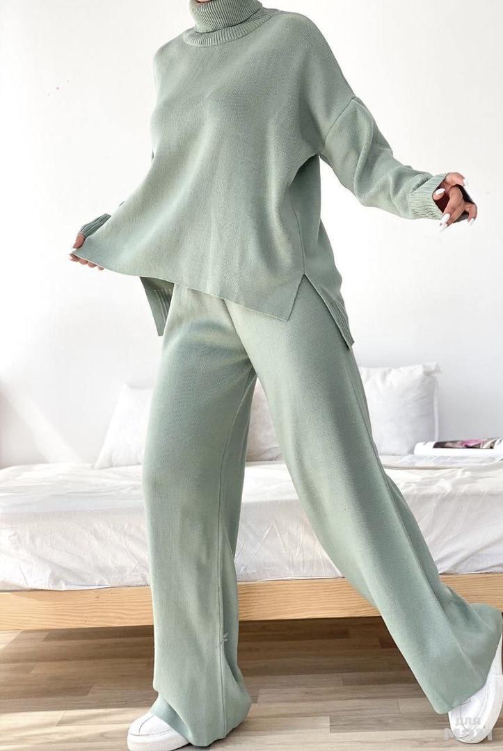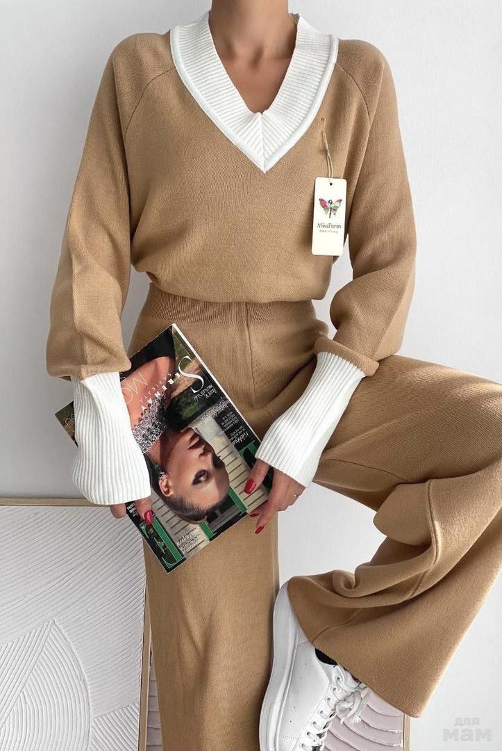 18. базовых костюмчиков😻 Кофта с воротом, разрезы по бокам🌸 Брючки палаццо💫 Теплый стильный образ для наших красоток💞
