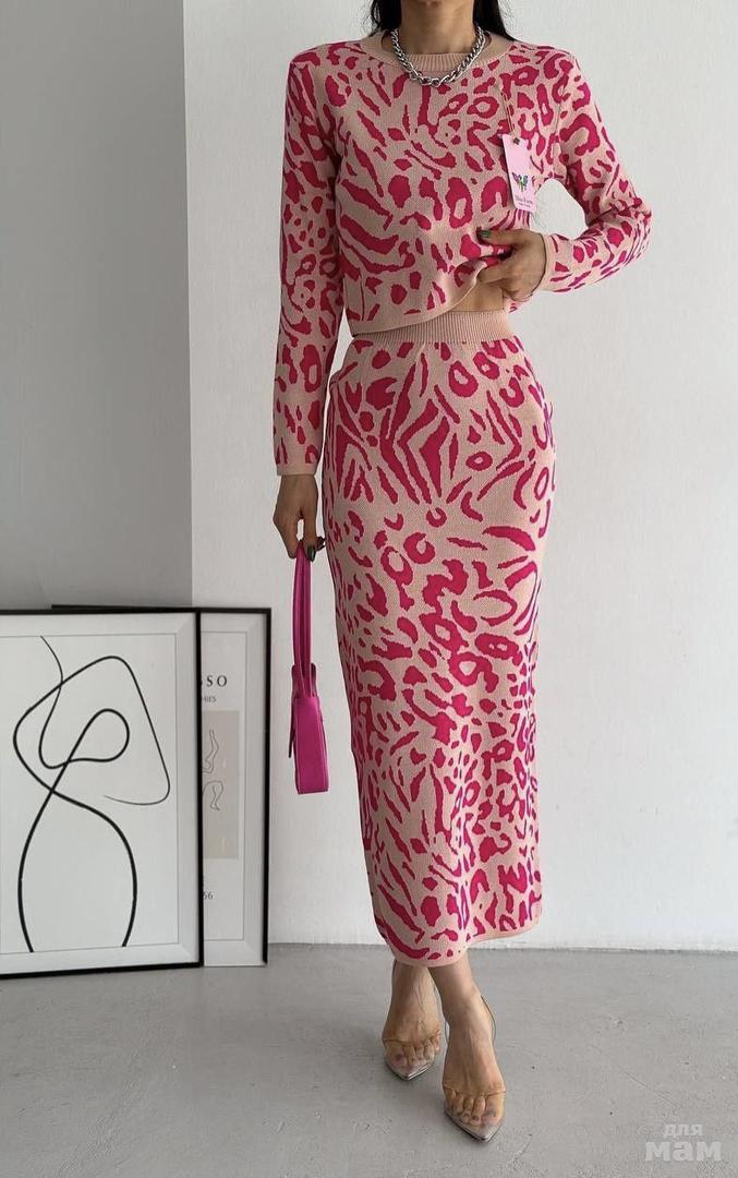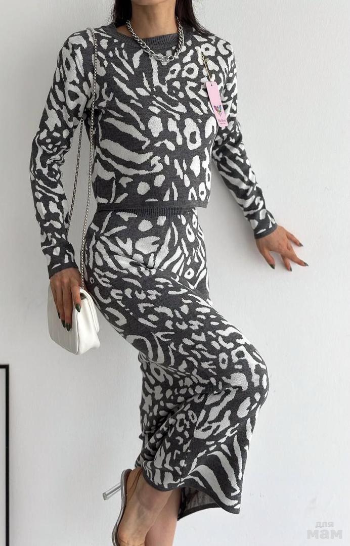 19.Трикотажные костюмчики юбка с кофточкой на пуговках😍 Интересный минималистичный принт💫Элегантный женственный образ для наших красоток🌿