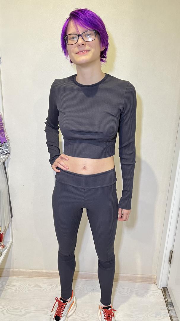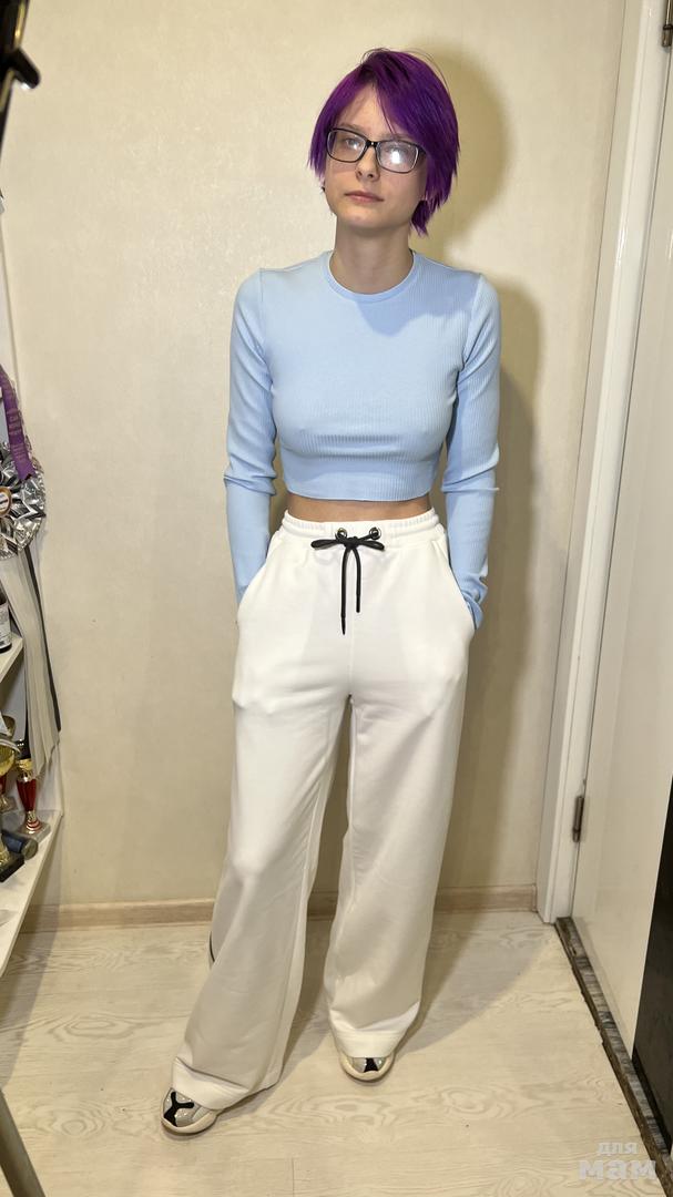 Кроп-топ размер 164 Весь трикотаж мне понравился. Особенно топы в голубом и антрацитовом цвете.