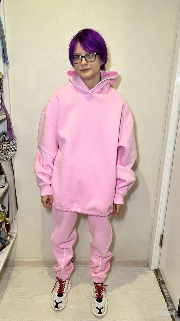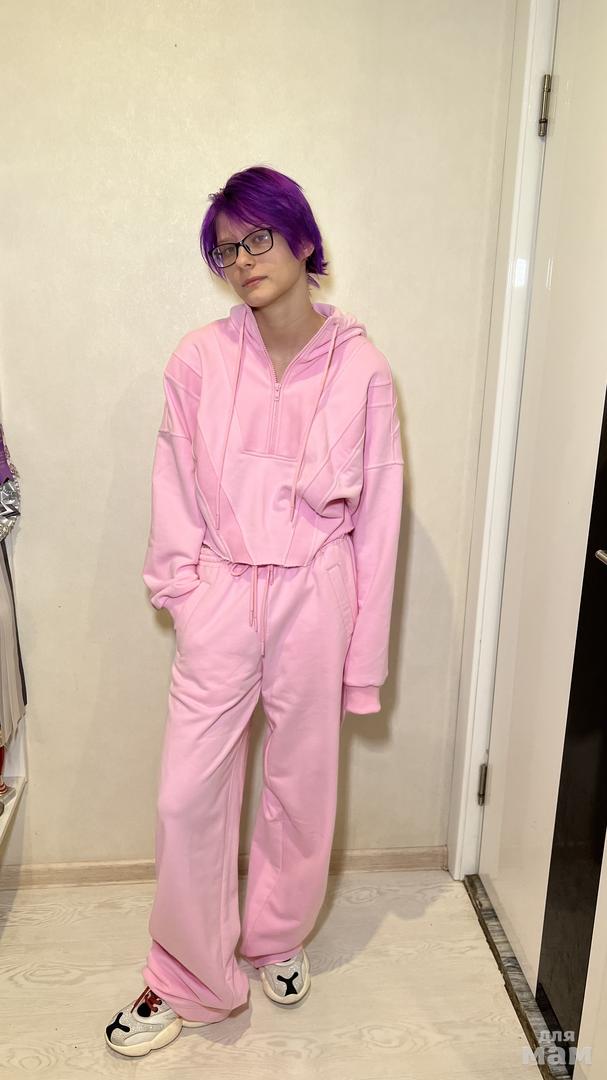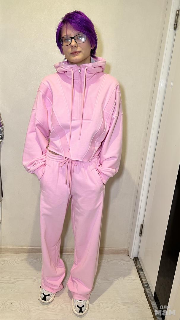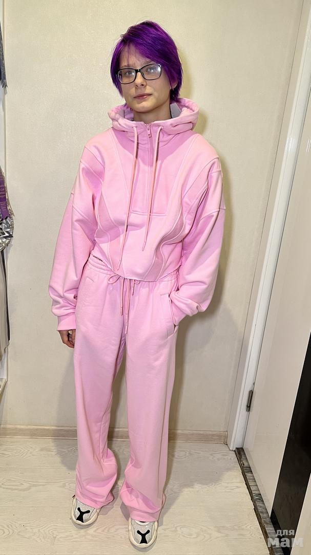 Розовый цвет просто бомба, дочка пожалела, что не взяла розовый. Антрацит тоже красивый, просто она взяла 2 костюма в антраците. В розовом цвете ткань с велюр эффектом, она мягкая как попа младенца. Даже в карманах ткань с велюр эффектом. Эта коллекция однозначно самая классная и по моделям и по качеству.