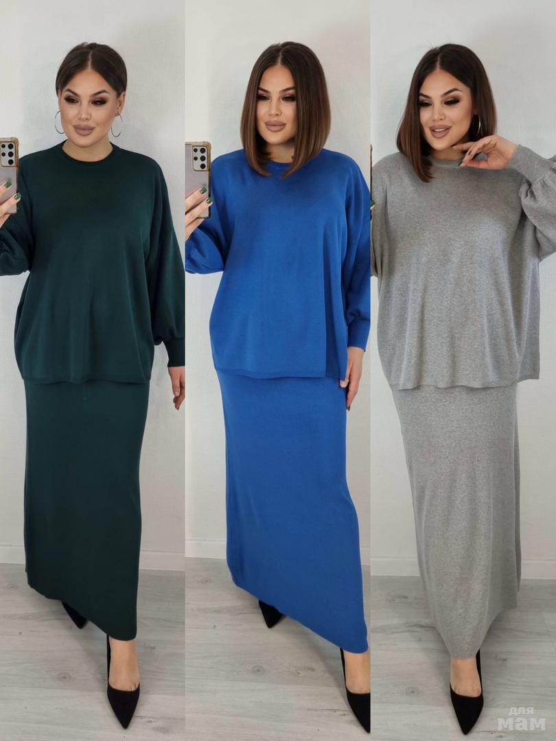 КОСТЮМ ТРИКОТАЖНЫЙ С ЮБКОЙ МИДИ, РАЗМЕР ДО 54-2600Р.