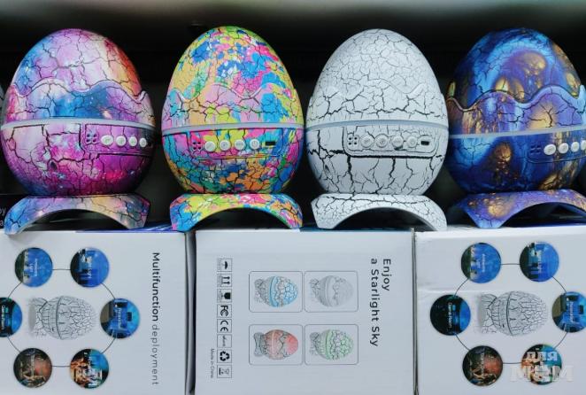 Ночник проектор звездное небо Яйцо дракона имеет встроенную колонку с Bluetooth и диско шар для дискотек. Лампа светильника вращается на 360 градусов. Помещение наполнится необычным визуальным и звуковым эффектом, который понравится и взрослым и детям. На потолке можно будет увидеть сияющие звезды, космические галактики, облака туманностей, северное сияние. Благодаря тому, что ночник совместим со смартфоном, можно слушать сказки, любимую музыку или медитации. Громкость звука на ночнике можно регулировать как пультом, так и с помощью телефона. Дискошар яйцо дракона украсит любую комнату даже в дневное время. У проектора очень красивый оригинальный дизайн. Скорлупа имеет характерные трещинки и некоторую шершавость, приятную на ощупь. Корпус устойчив к падению, не нагревается.