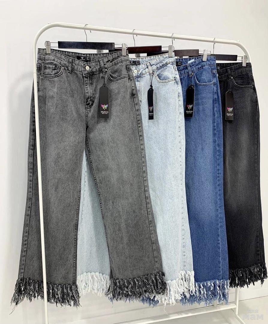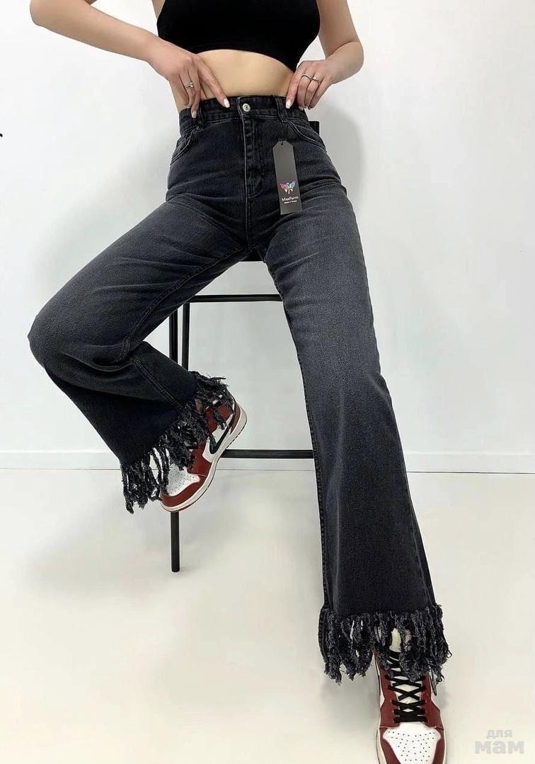 Стильная модель прямых джинсов💫 Слегка укорочены, низ с бахрамой🌸 Интересная интерпретация для новых образов💋