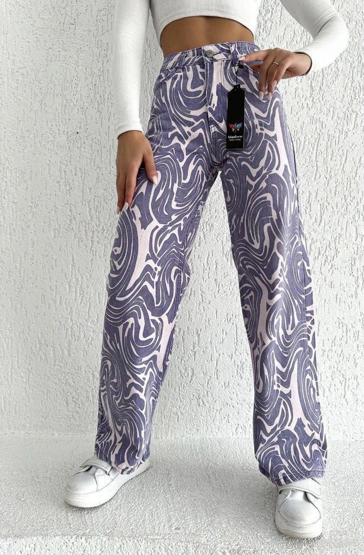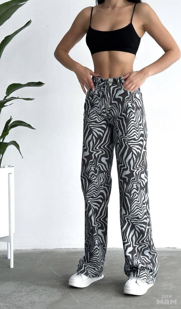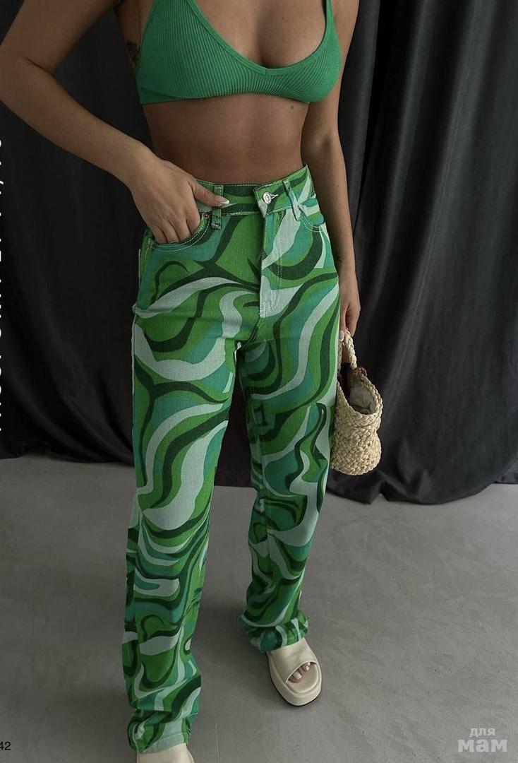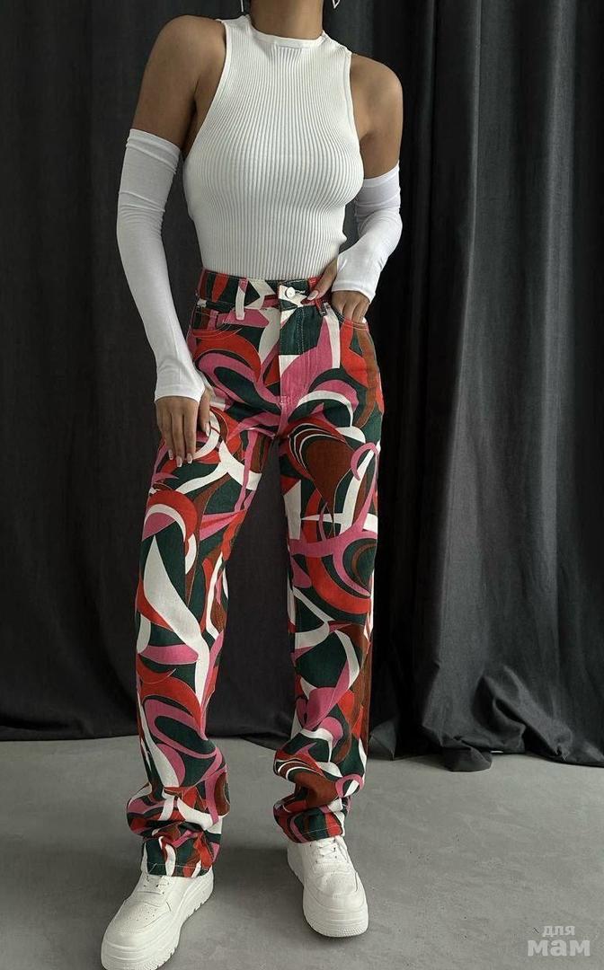 Яркая вариация джинсов труб😻 Стильный цветастый волнообразный принт🔥 Сочные летние образы🍉