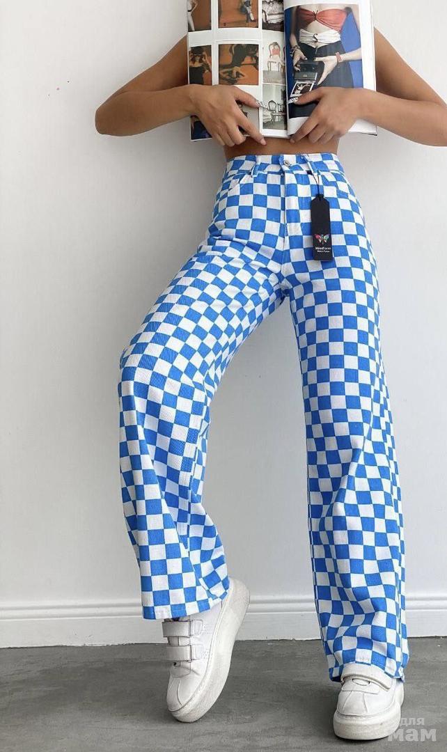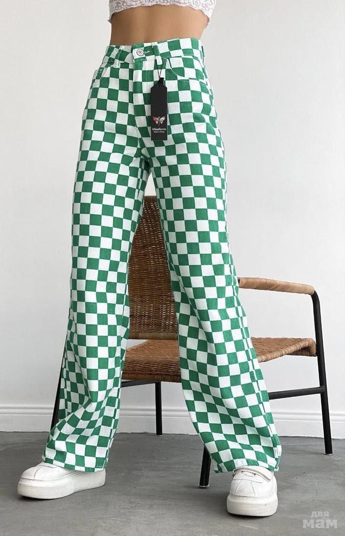 Любимая модель джинсы-трубы в расцветке шахматкой♟ Стильный яркий элемент в вашем гардеробе💫 Проведем лето ярко💚