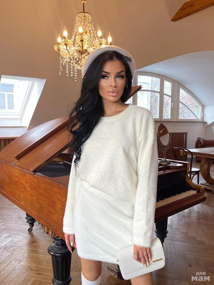 Вязаное пушистое платье идеальное сочетание тепла и стиля для холодного времени года. Фото сделаны в живую, длина по спинке 90 см. Отличное фабричное качество. Машинная вязкая. ЦЕНА 1200 РУБ