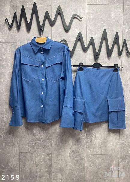 костюм рубашка+юбка из тонкого денима. Юбка: длина 47, талия 33. Рубашка: длина 57 , пог 49. Арт. 2159