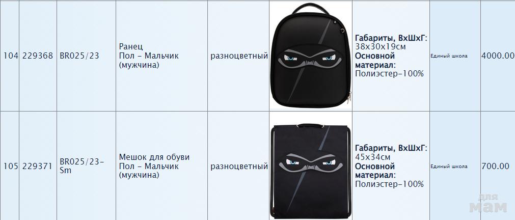 67.Комплект : Ранец школьный с наполнением(3 предмета ранец +пенал + мешок) цена 3300р