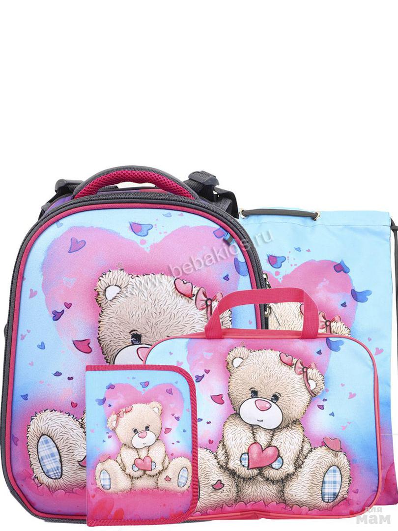 53.Ранец DeLune 10-004 + мешок + мягкий пенал + мишка + ленточка цена 4400р