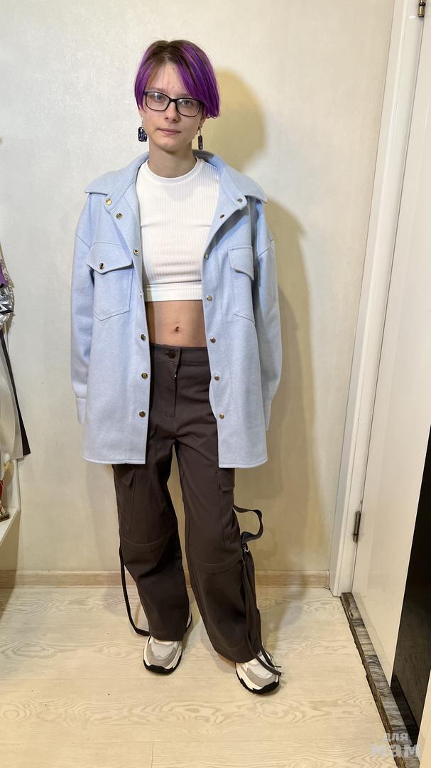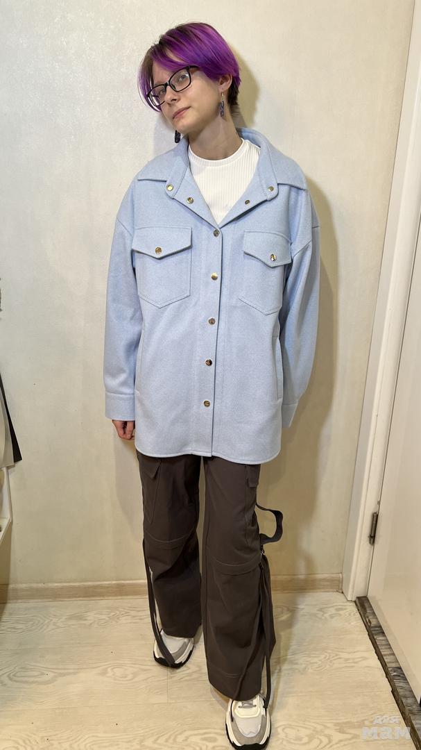 Рубашка очень классная из пальтовой ткани, мягкая размер 164 на рост 160