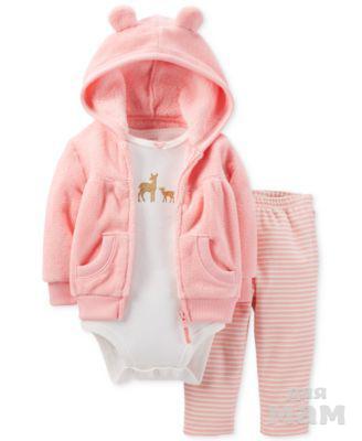 Новыйкомплект американской фирмы carters. Кардиган на молнии с капюшоном и 2 карманами из велюра (плюшевый,пушистый), боди белый с коротким рукавом 100% хлопок, легенсы 97% хлопок 3% люрикс в полоску. Размер 24 м. С этикеткой