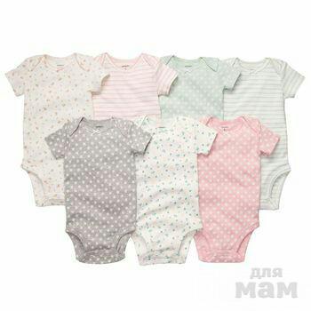 Новые боди с коротким руковом американской фирмы Carters, размер 18 мес. (по мне большемерят до 2 лет). 7 штук в упаковке. На каждом этикетка. можно по отдельности купить. Качество трикотажа превосходное, лучше чем Mothercare в 1000 раз. Не вытягивается, не линяет, не теряет форму. Остались 3 шт. В горошек, розовый, зеленый и серый.
