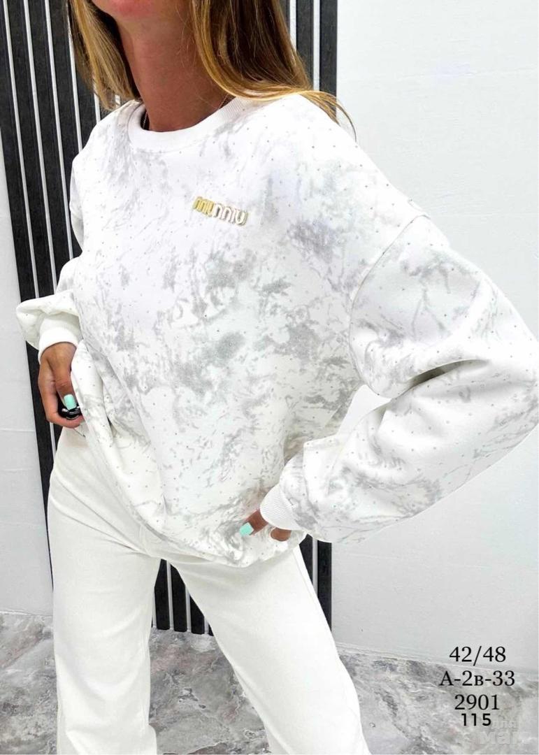 Свитшот. А 2В-33 (2901) .Новая осеняя коллекция. Со стразами. Длина изделия 80 см. Состав полиэстер 65%, шерсть 35%. Качество отличное. Рост модели 170. ЦЕНА 1150 РУБ