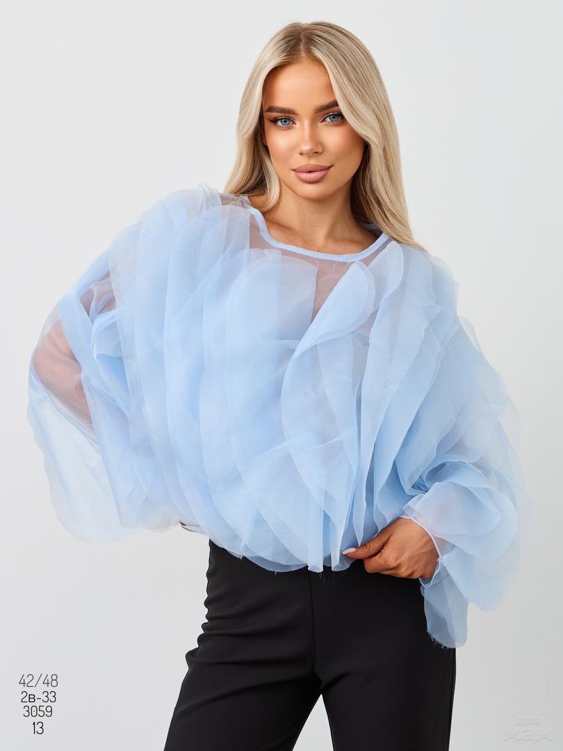 Женские блузки с рюшами. Артикул 3059. Качество отличное , шифон+полиэстер . ЦЕНА 1300 РУБ