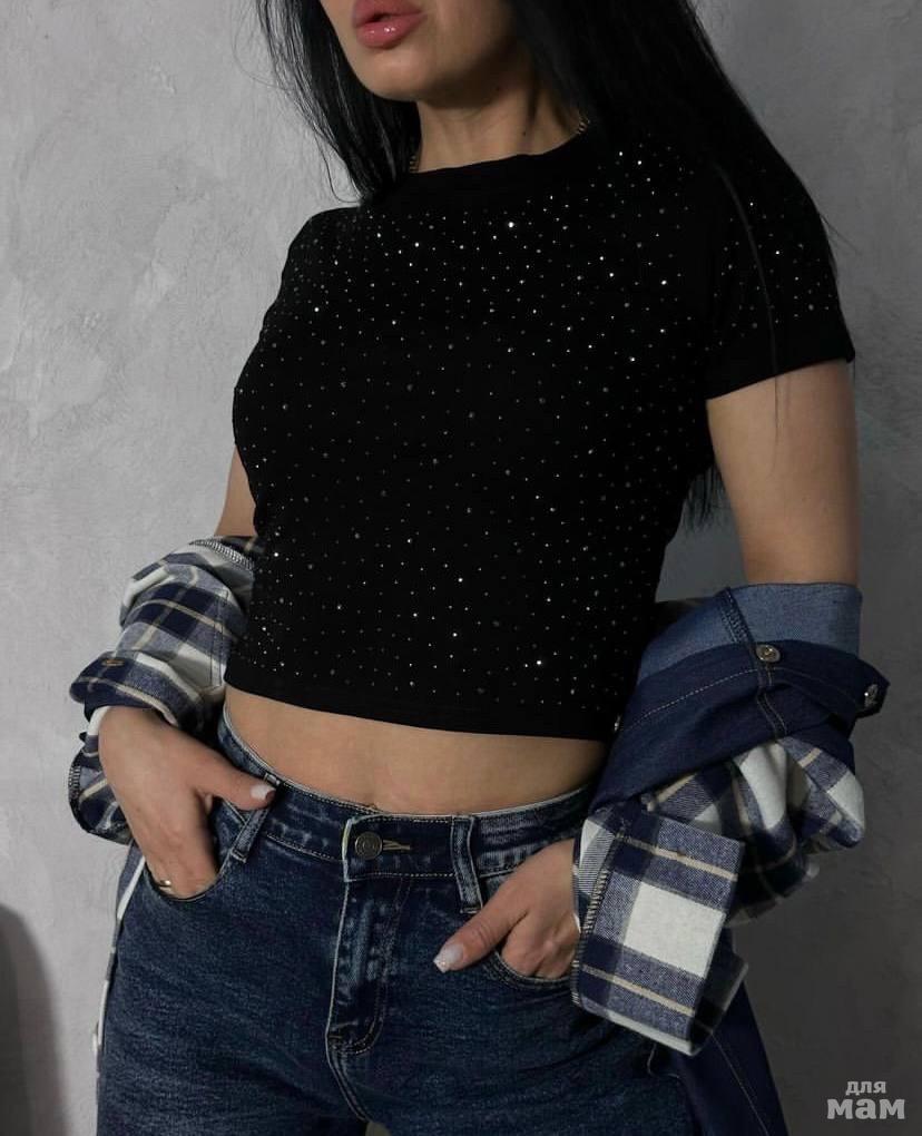 Футболка кроп стразы. Состав хлопок/пэ . Производитель Китай . ЦЕНА 800 РУБ