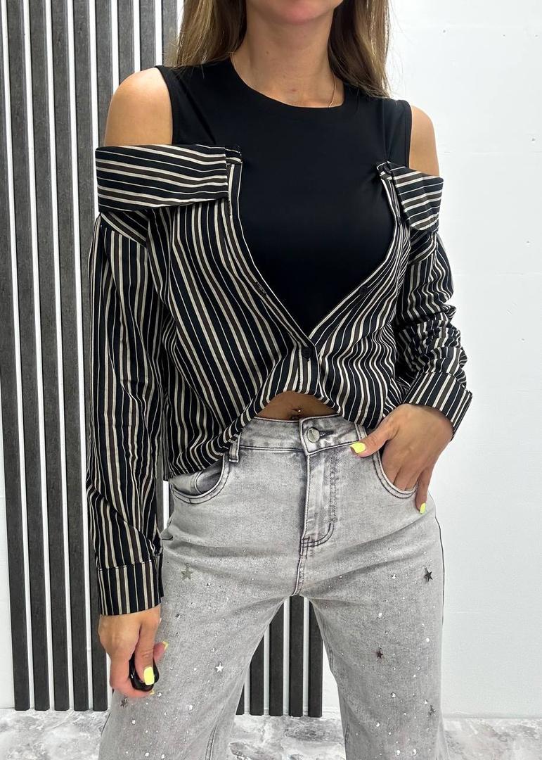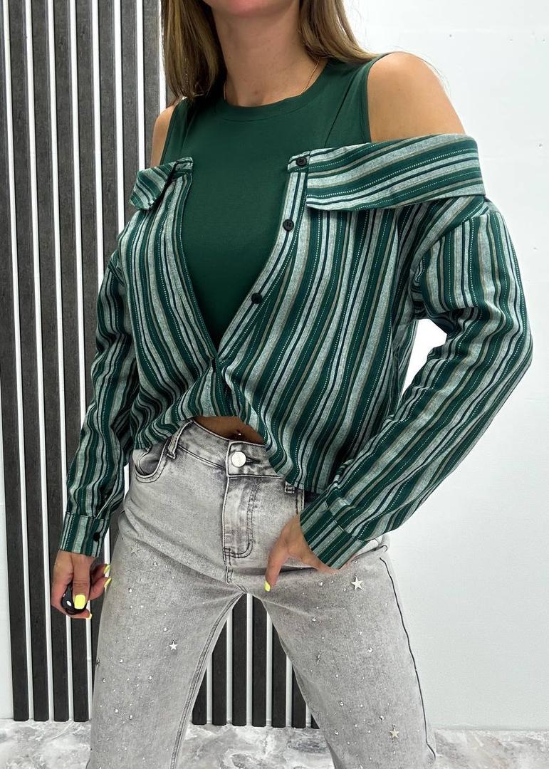☑️ Женская рубашка , двойка с обтягивающим топом ( обманка )