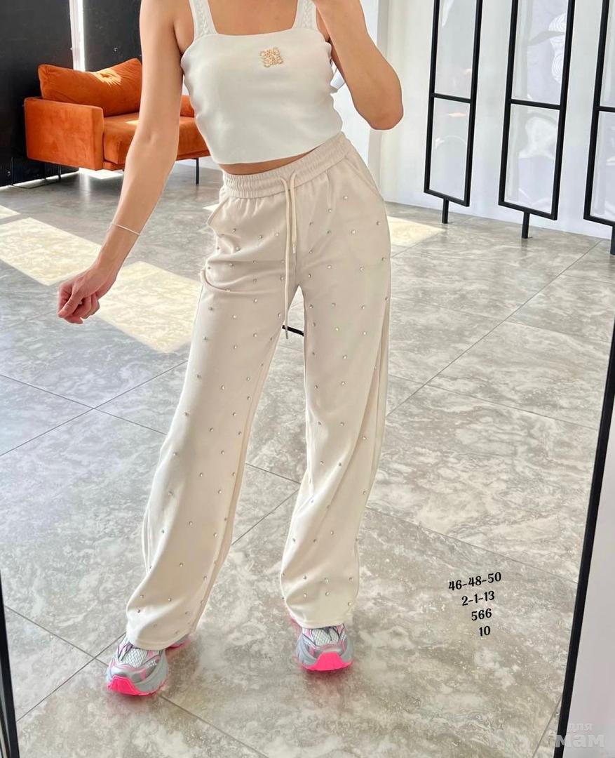 Женские брюки - палаццо 2-1-13 566 10 . Качество отличное , с камушками. Ткань двухнитка , качество фабричное. Посадка высокая , рост модели 170. ЦЕНА 1000 РУБ