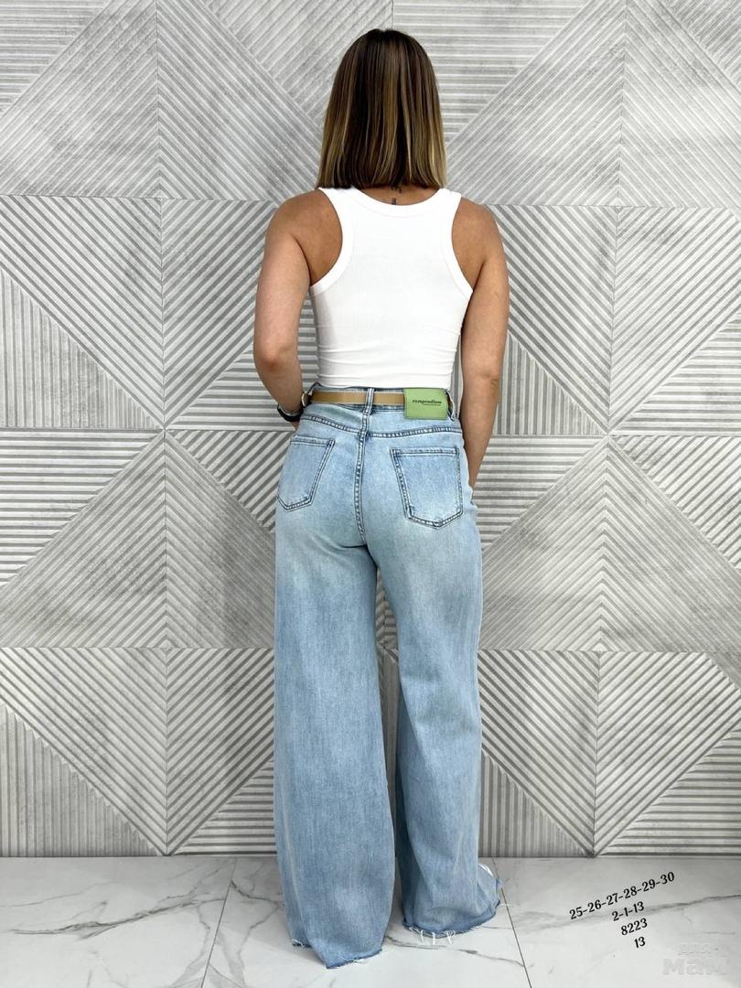 Женские джинсы - палаццо 2-1-13 8223 16 . Тонкие на лето . Хлопок с добавлением стрейча . Посадка высокая , рост модели 170 . ЦЕНА 1600 РУБ
