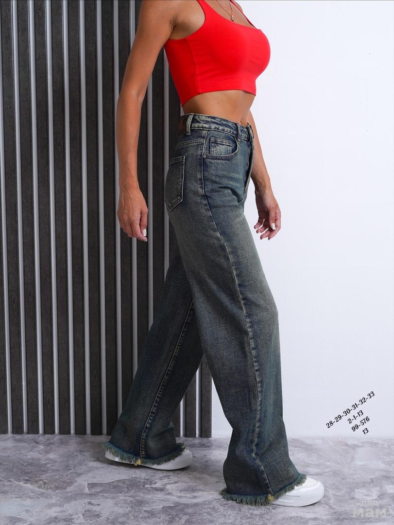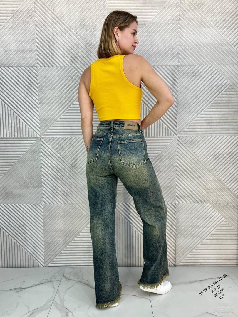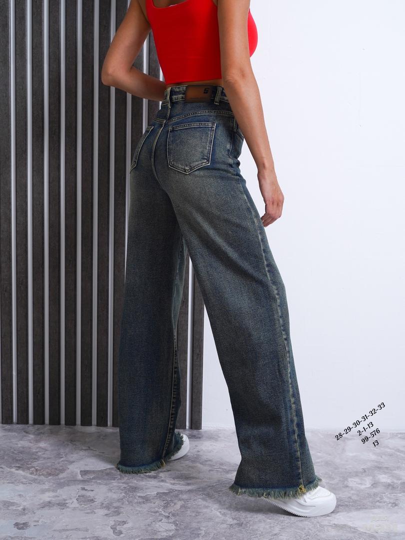 Женские джинсы палаццо 99-566 2-1-13 13 . Хлопок с добавлением стрейча. Низ штанины не обработанные . Посадка высокая , рост модели 170. ЦЕНА 1300 РУБ