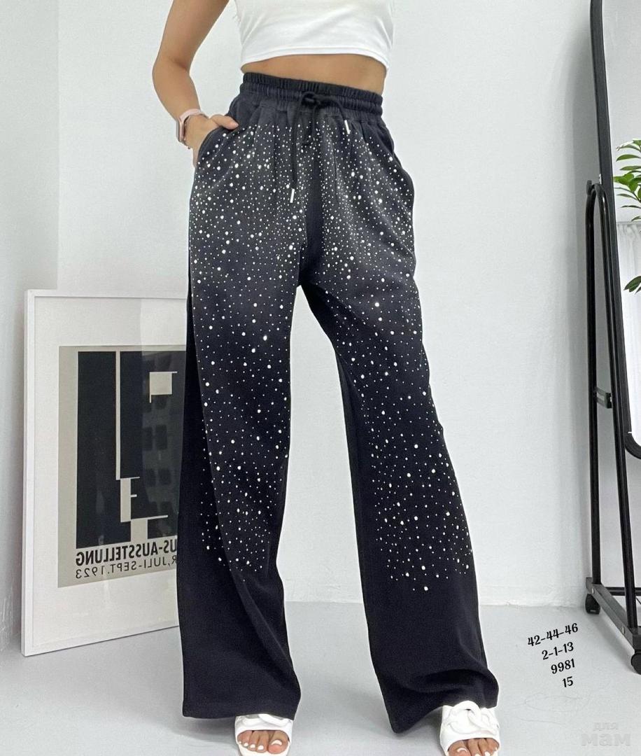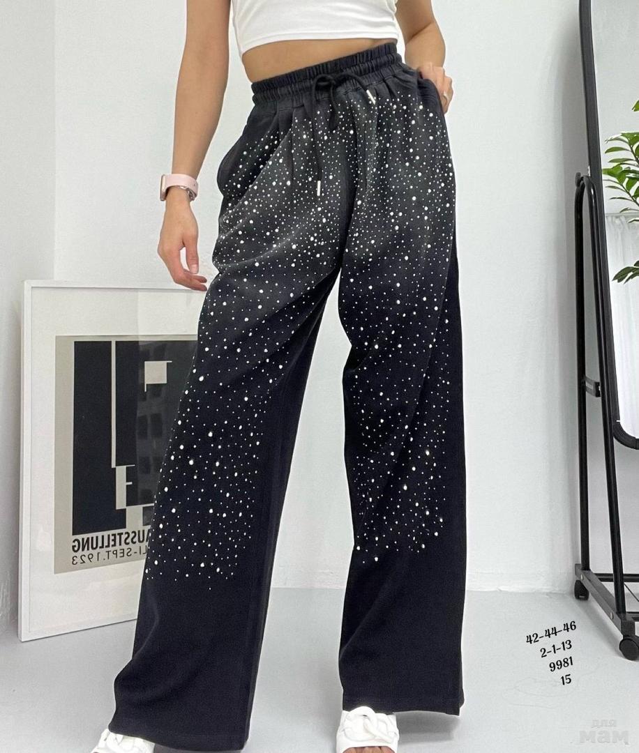 Женские брюки - палаццо. 2-1-13 9981 15 Качество отличное , со стразами. Ткань трехнитка , качество фабричное . Посадка высокая , рост модели 170. ЦЕНА 1500 РУБ