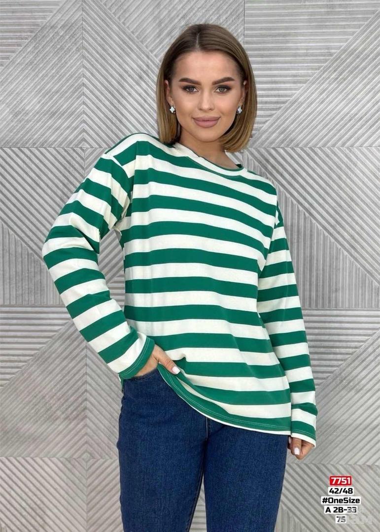 Футболка, ткань. А28-33 75 Тельняшка женская с длинным рукавом в полоску. Качество отличное