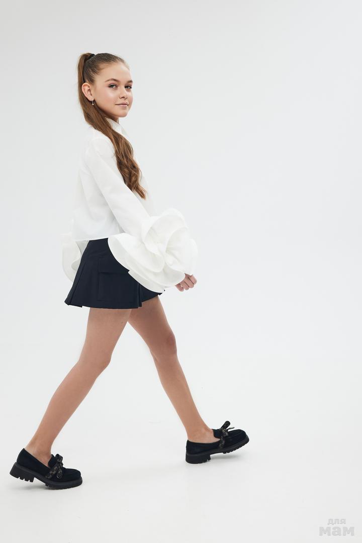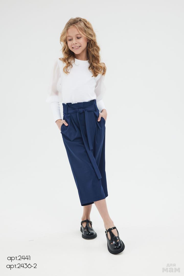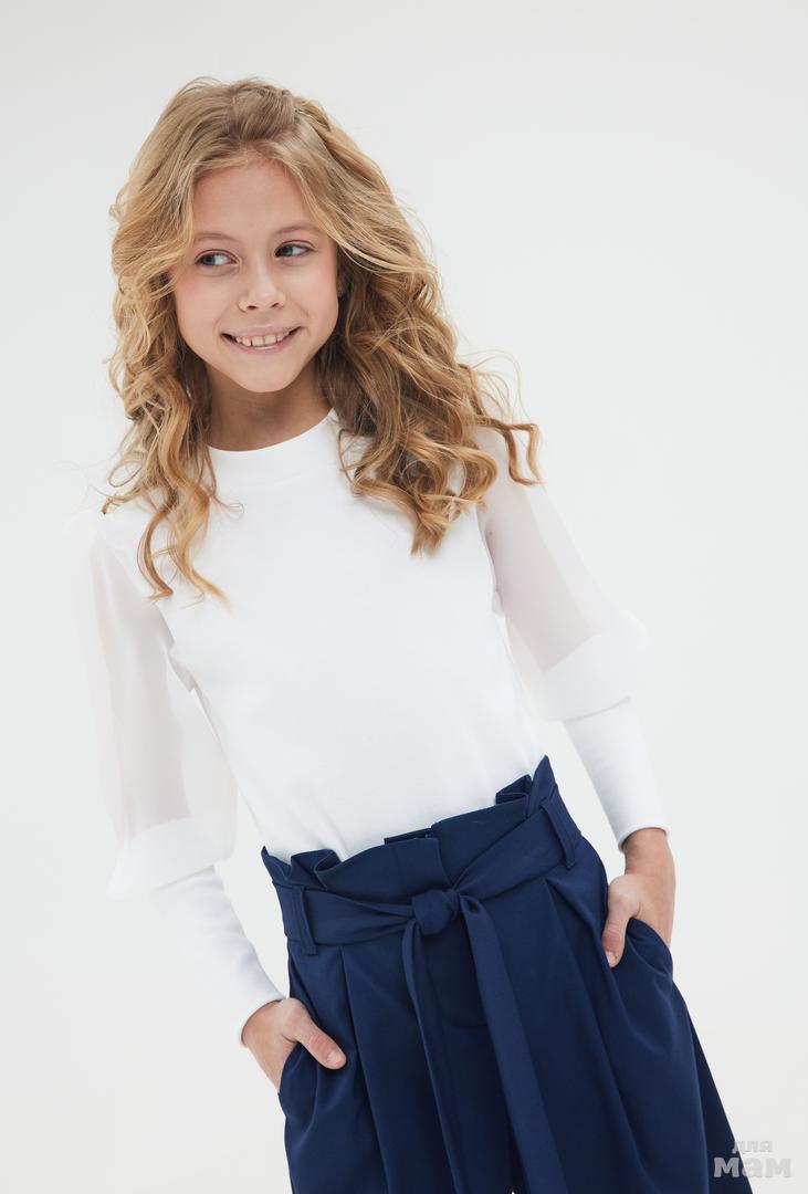 2441 блузка трикотаж,длинный рукав органза,высокий манжет белый 5% лайкра 5% вискоза 90% хлопок