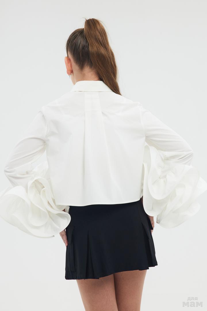 2456 блузка укороченная ,длинный рукав, объемные воланы, итальянский хлопок белый 97% хлопок 3% эластан
