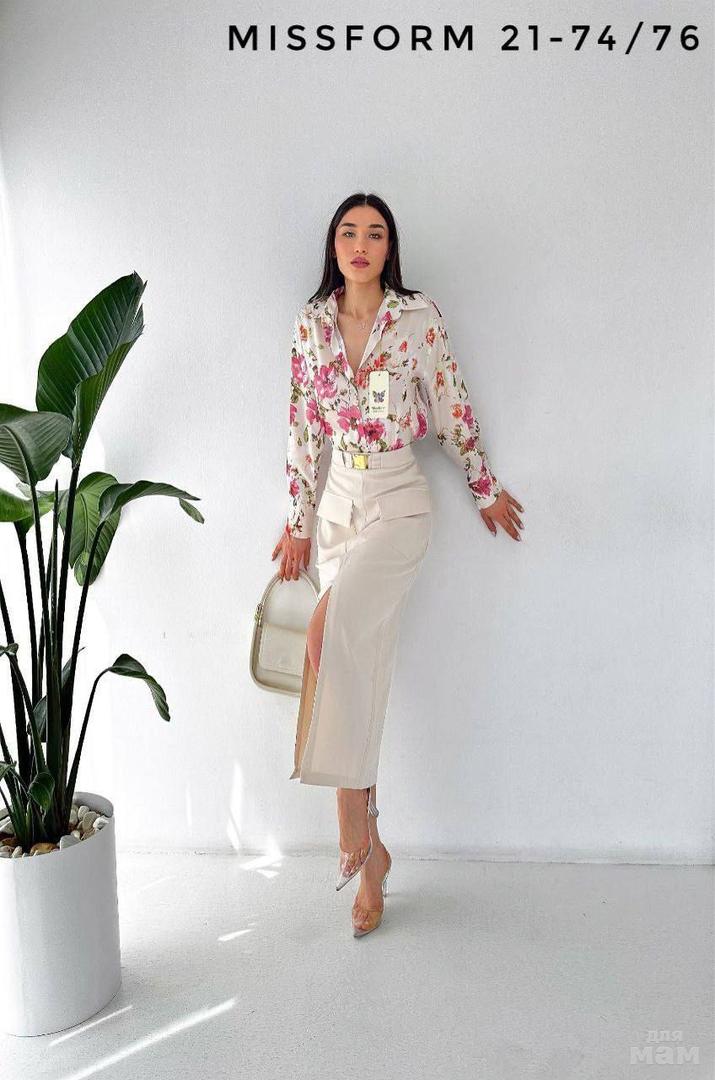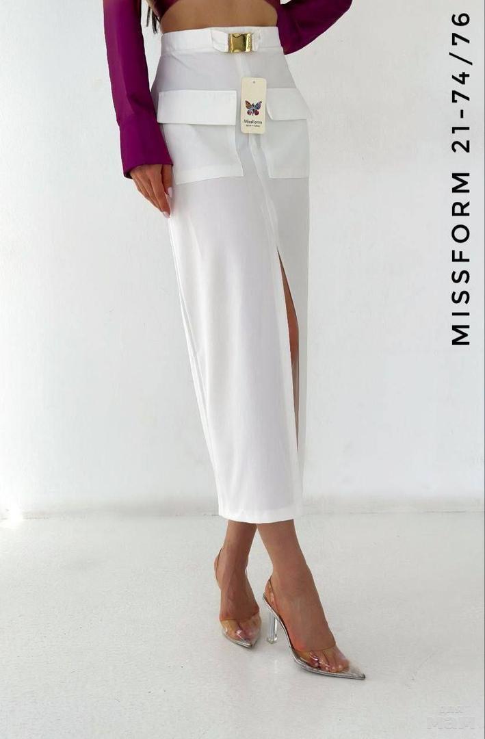 Модель юбок миди длины😍 Актуальные нашивные карманы и разрез впереди🔥 Костюмная ткань с лайкрой, благодаря чему сидеть будет на вас великолепно🌟