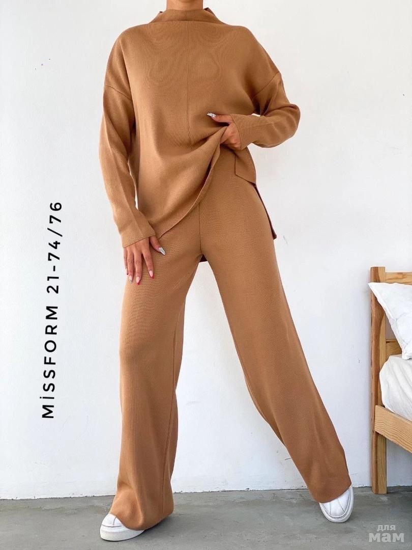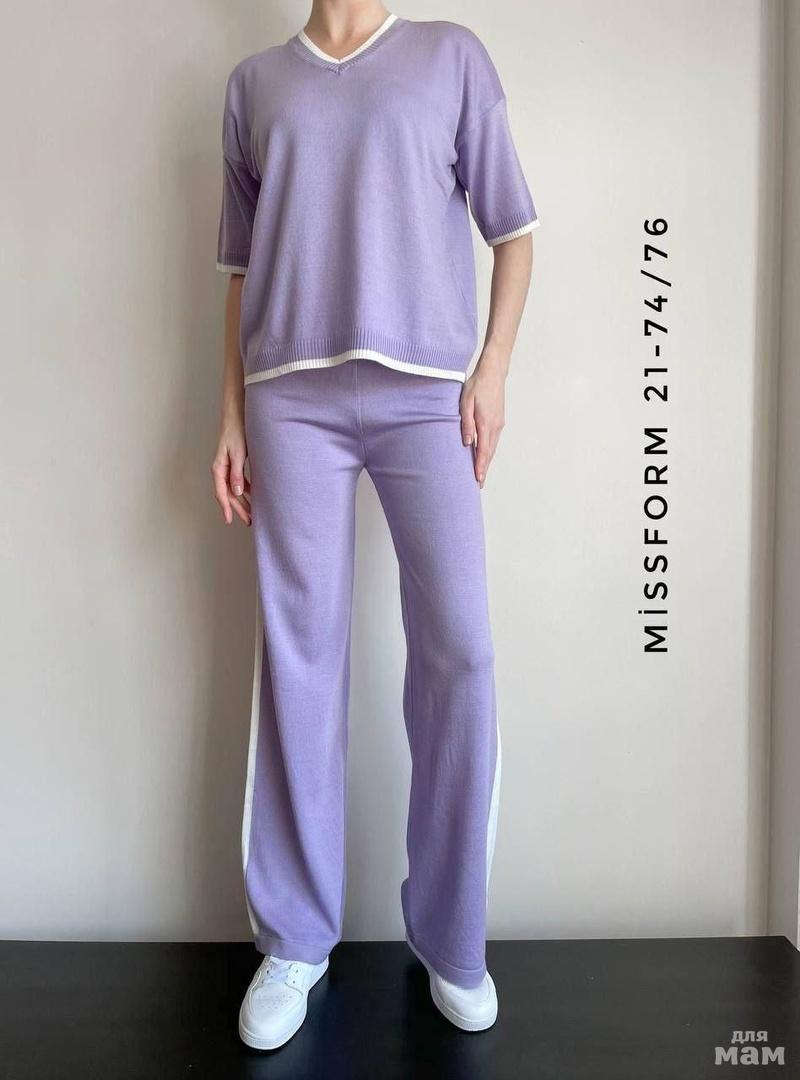 Трикотажные костюмы с футболочкой💫 Верх с V-вырезом, брючки палаццо🌿 Элегантная контрастная окантовка🌻 Комфортный костюм как на каждый день, так и более нарядных событий😻
