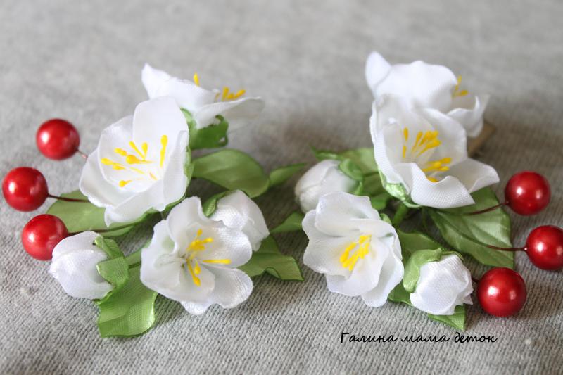 заколочки для волос с вишневой веточкой, все элементы подвижны.