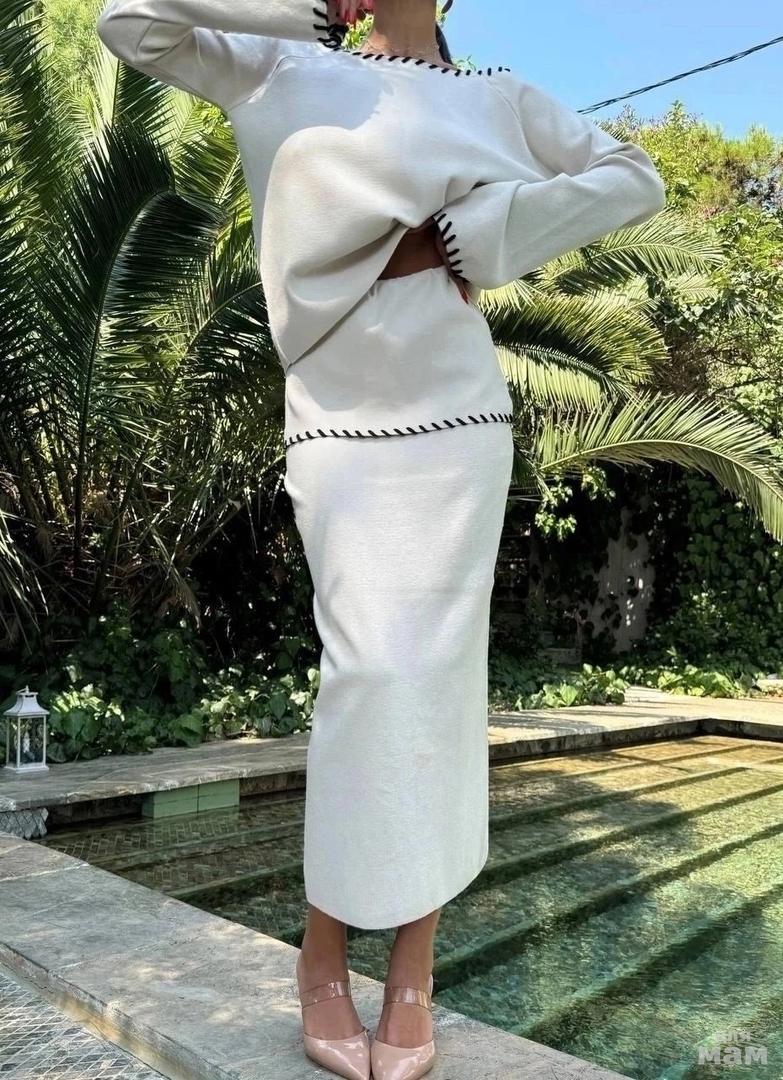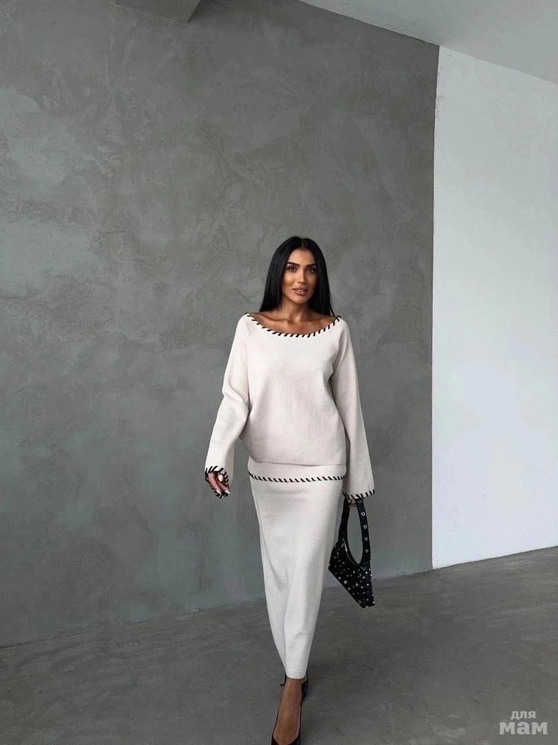 Качество отличное. Длина кофты по спинке 46 см. Длина рукава от плеча 64см. Длина юбки 84 см
