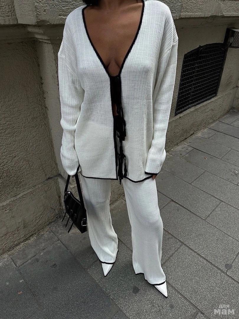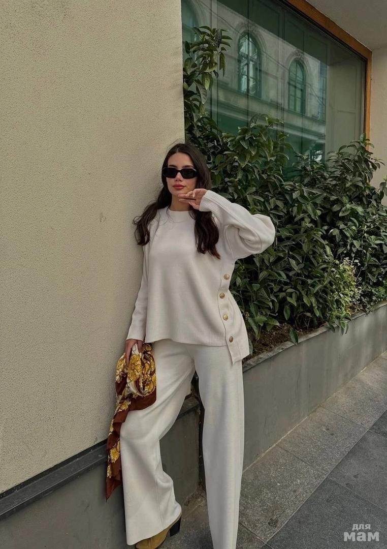 РАСПРОДАЖА !!!!!!!!!!!! Интересный кардиган и штаны прямого кроя в однотонных тоннах ! Повседневный облик очень важен для продуктивного начало дня ! Ткань хлопок 70% \ акрил 30%. Качество отличное. Длина кофты по спинке 67см. Длина рукава от шва 48 см ( рукав спущенный). Длина штанин 107 см