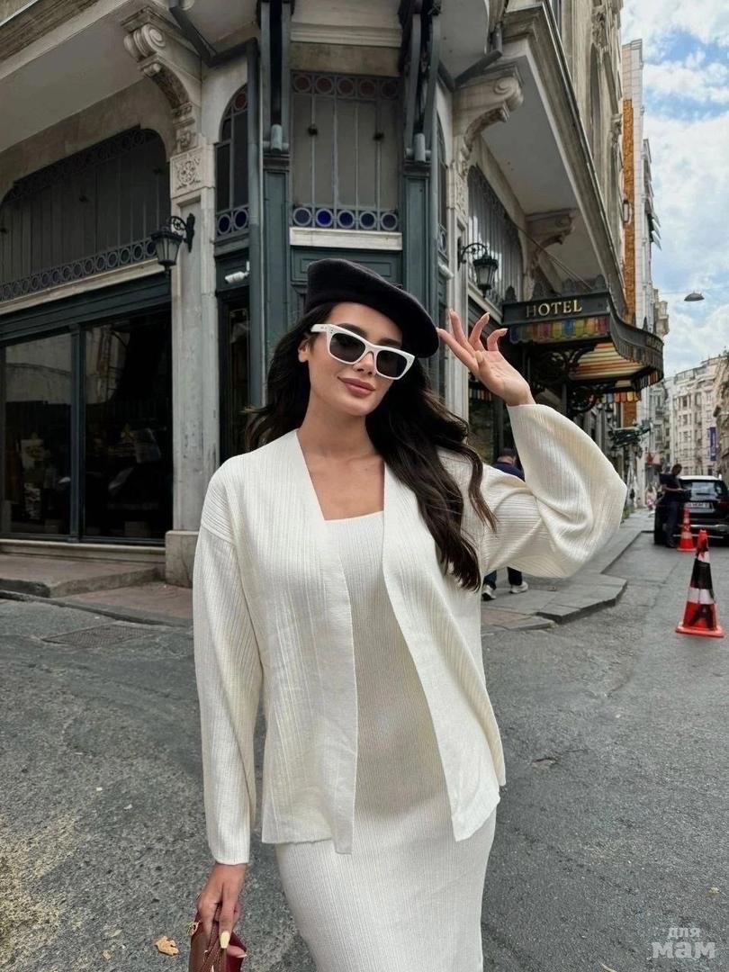 Качество отличное. Длина кардигана по спинке 67см. Длина рукава от шва 47см ( рукав спущенный) Длина юбки 80 см. Производство Турция. Арт 24154. ЦЕНА 1600 РУБ