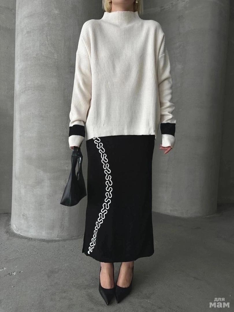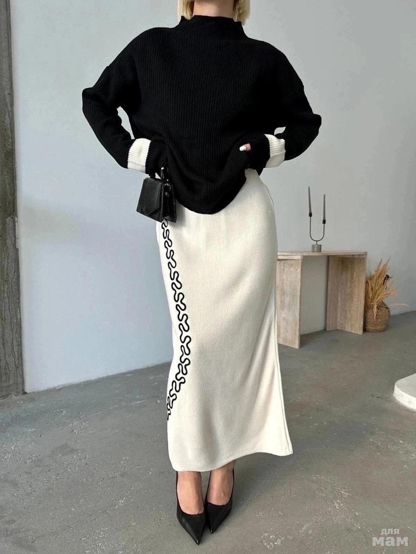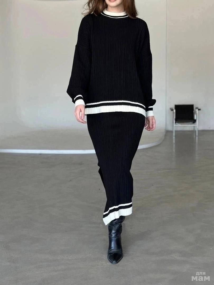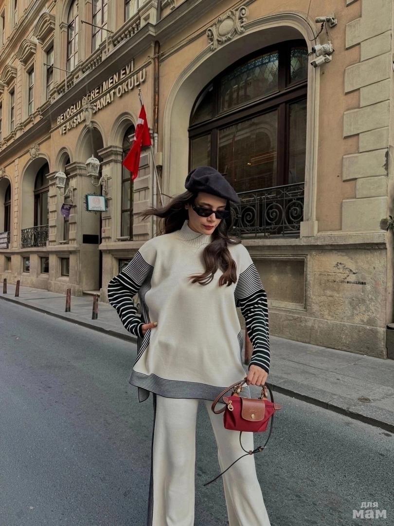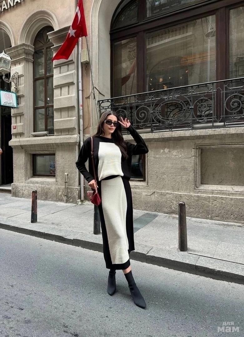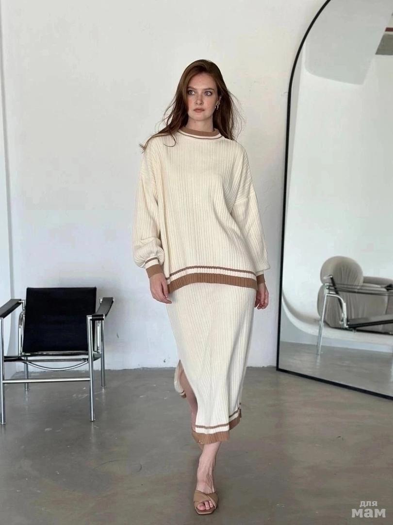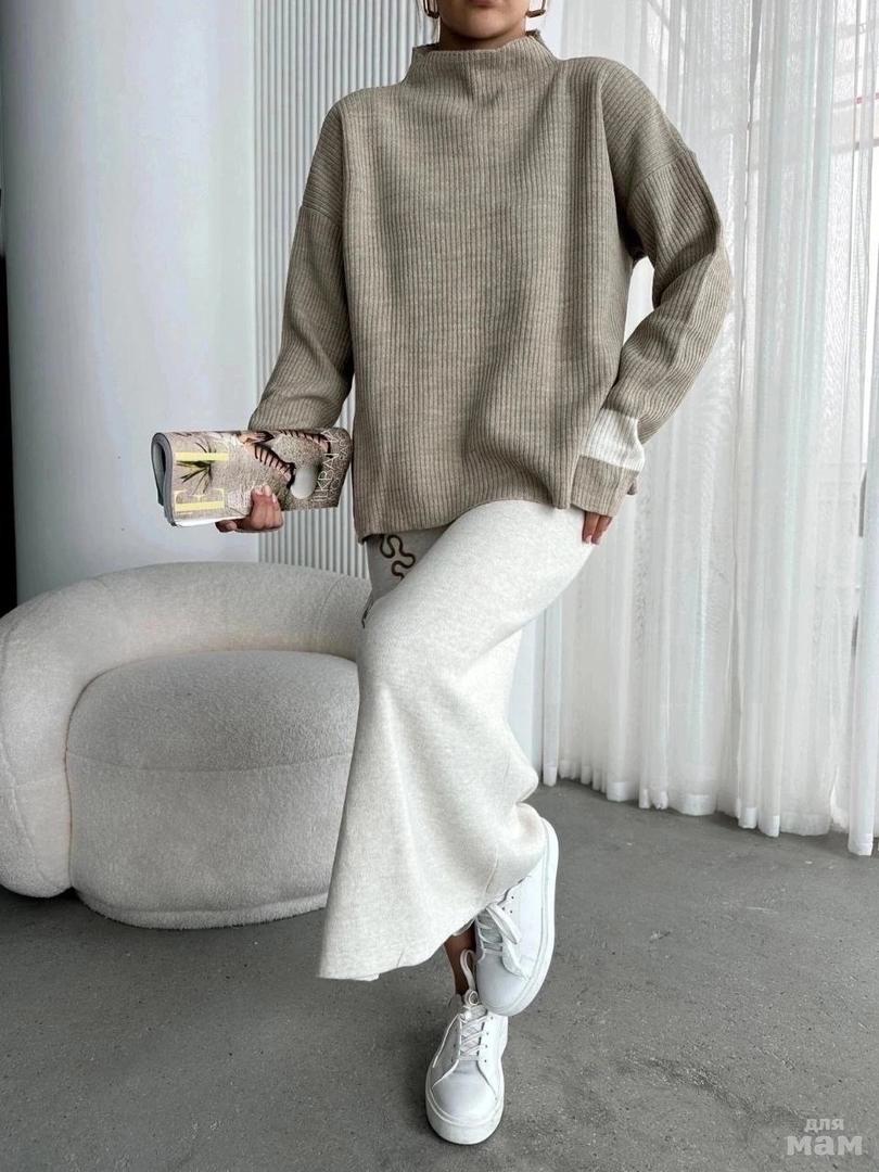 РАСПРОДАЖА !!!!!!!!!!!! Костюм в комбинированных тоннах с идеальной посадкой в стиле оверсайз визуально стройнит и вытягивает силуэт ! Ткань хлопок 70% \акрил 30%. Качество отличное . Длина кофты по спинке 70 см. Длина рукава от шва 60см ( рукав спущенный ) Длина юбки 80 см. Производство Турция. Арт 5196 . ЦЕНА 1600 РУБ