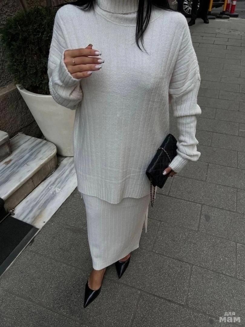 РАСПРОДАЖА !!!!!!!!!!!! Костюм в нежной и мягкой ткани, очень приятный тактильно! Мини юбка и овер свитер с высоким горлом ! Ткань хлопок70% акрил 30%. Качество отличное. Длина кофты по спинке 60см