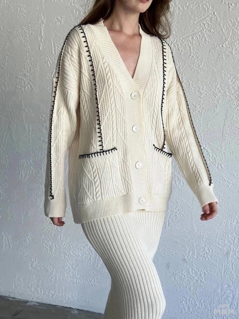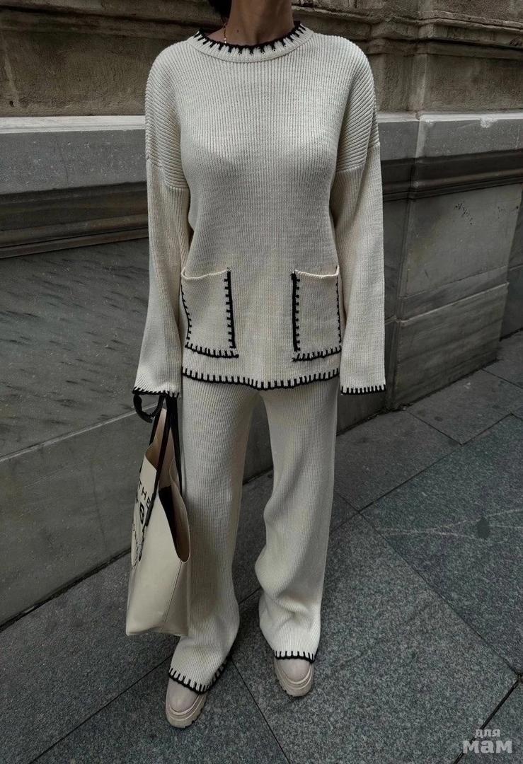 РАСПРОДАЖА !!!!!!!!!!!! Новый образ на самое прекрасное время года —осень ! Сдержанно-строгий костюм, в ритме со временем ! Ткань хлопок 70%\ акрил 30%. Качество отличное. Длина кардигана по спинке 72см. Длина рукава от шва 48см ( рукав спущенный) Длина штанин 108 см