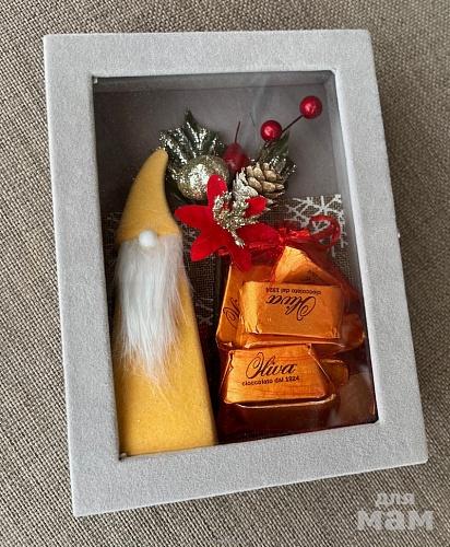 Бархатное Рождество Джандуйотти шоколадные конфеты( Италия), гномик бархатный в бархатной шкатулке 20х15х5 см.