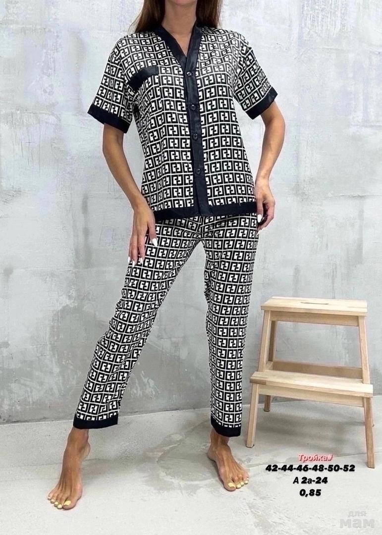 Пижама женская , тройка ( штаны +шорты ) Материал мягкий как холопок. Качество отличное . А 2А 24 50. Не самопошив , качество фабричное. ЦЕНА 500 РУБ